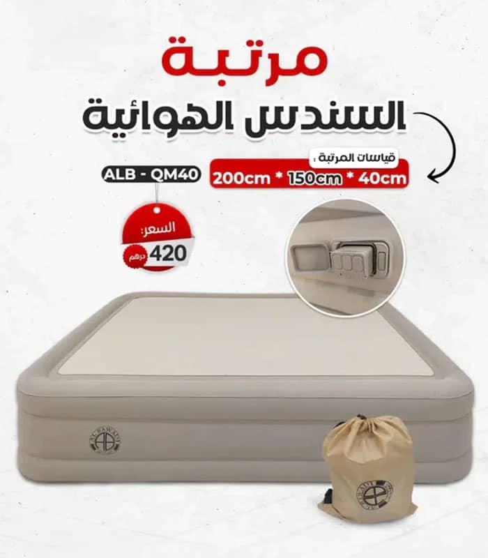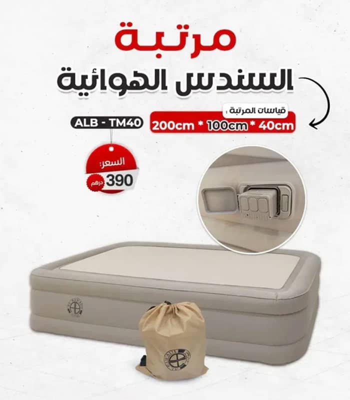 تشک بادی قابل حمل با پمپ برقی داخلی و باتری شارژی، بادشونده خودکار، دارای بالش رایگان و عرضه در سه سایز مختلف. مناسب برای سفر، کمپینگ و استفاده در منزل.