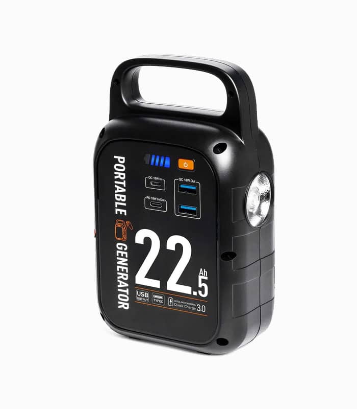 پاوربانک قابل حمل 22500mAh با چراغ SOS و شارژ سریع QC3.0، مجهز به ژنراتور دستی و پنل خورشیدی؛ ایدهآل برای سفر و شرایط اضطراری.