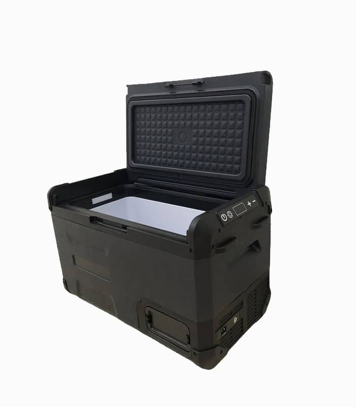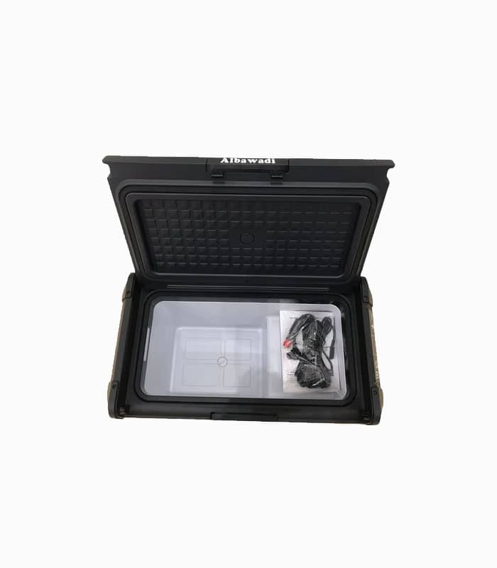 یخچال مسافرتی خودرو ۲۵ لیتری با کمپرسور قابل تنظیم و امکان استفاده با باتری قابل شارژ. مناسب برای سفر، کمپینگ و کوهنوردی.