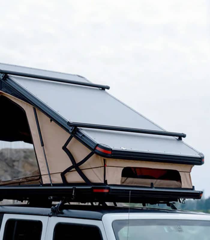 چادر سقفی کمپینگ Bush Cruiser V2 Pro یک انتخاب حرفهای برای ماجراجویان، طبیعتگردان و عاشقان سفرهای جادهای است. طراحی مثلثی و پوسته سخت آلومینیومی آن، علاوه بر مقاومت بالا، راحتی و ایمنی بیشتری هنگام خواب در فضای باز فراهم میکند.