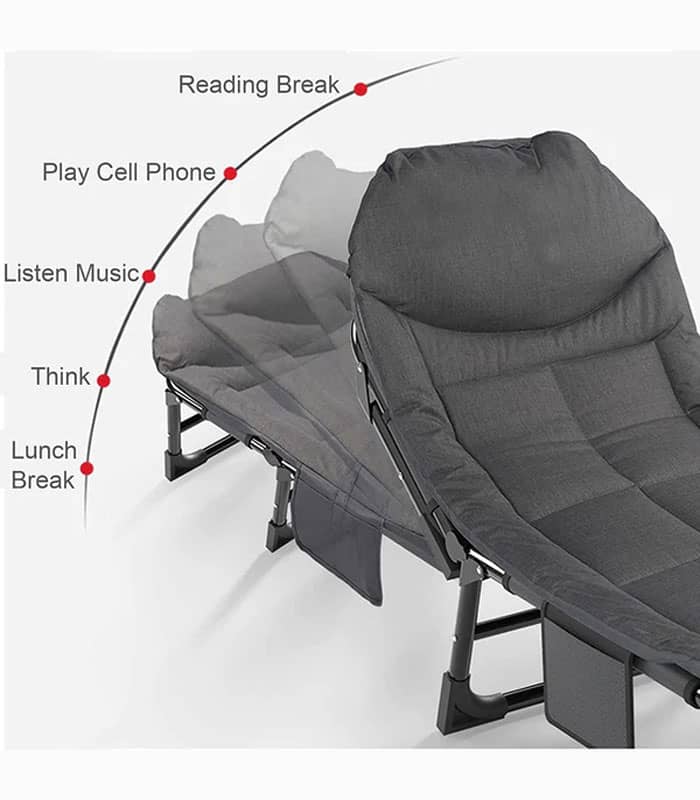 وجود بالشت همراه و جیبهای جانبی باعث افزایش راحتی و امکان نگهداری وسایل شخصی هنگام استراحت میشود. این تخت مناسب استفاده در کمپینگ، پیادهروی، سفرهای طبیعتگردی و حتی محیطهای اداری برای استراحت کوتاه است.