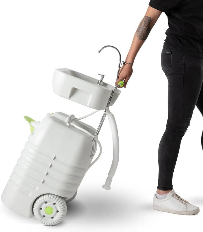 این روشویی سیار کمپینگ، گزینهای ایدهآل برای سفرهای طبیعتگردی، کمپینگ، پیکنیک و محیطهای خارج از خانه است. این دستگاه مجهز به پدال پا مکانیکی بوده که امکان شستوشوی دستها را بدون لمس مستقیم شیر فراهم میکند و به حفظ بهداشت کمک میکند.