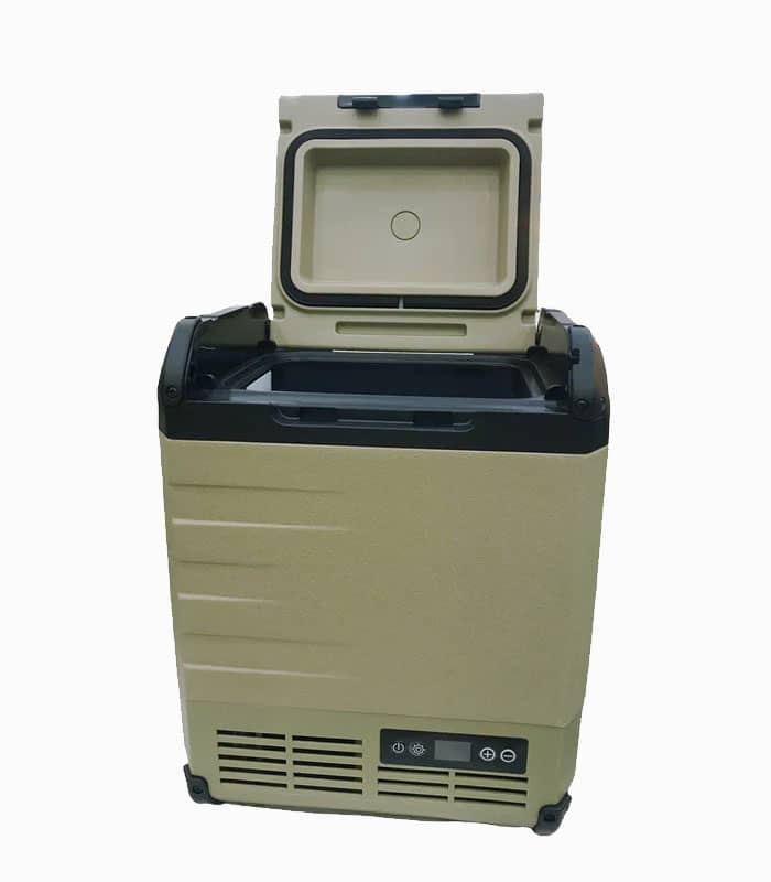 یخچال فریزر کمپرسوردار قابل حمل خودرو با ظرفیت ۱۰ لیتر، دمای قابل تنظیم -۵ تا ۲۰ درجه، قابلیت اتصال به برق ۱۲/۲۴ ولت یا باتری شارژی جداگانه. مناسب کمپینگ، سفر و طبیعتگردی.