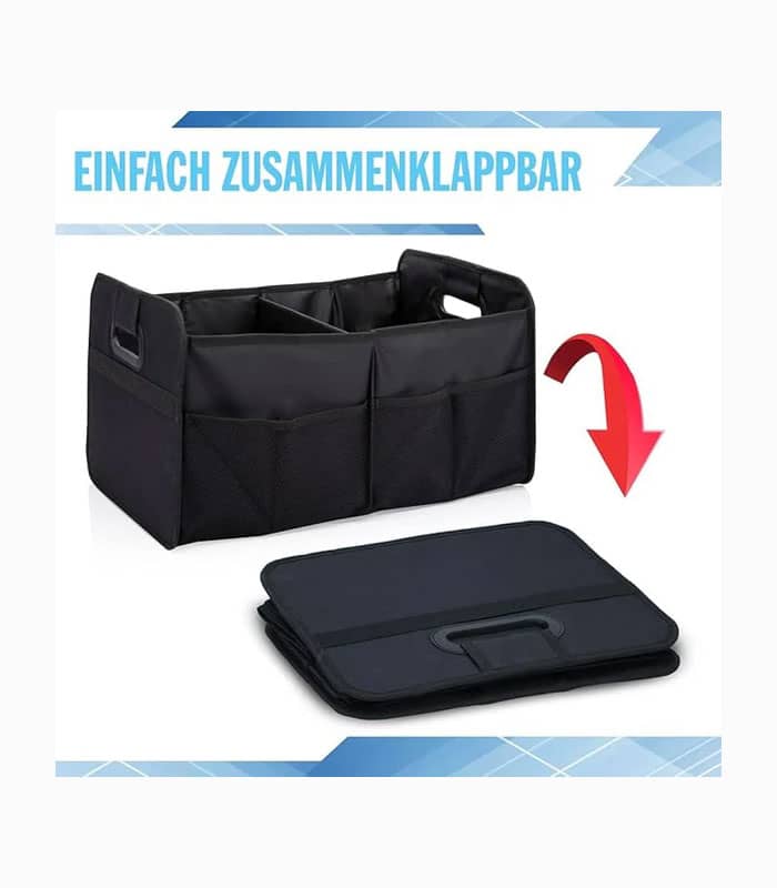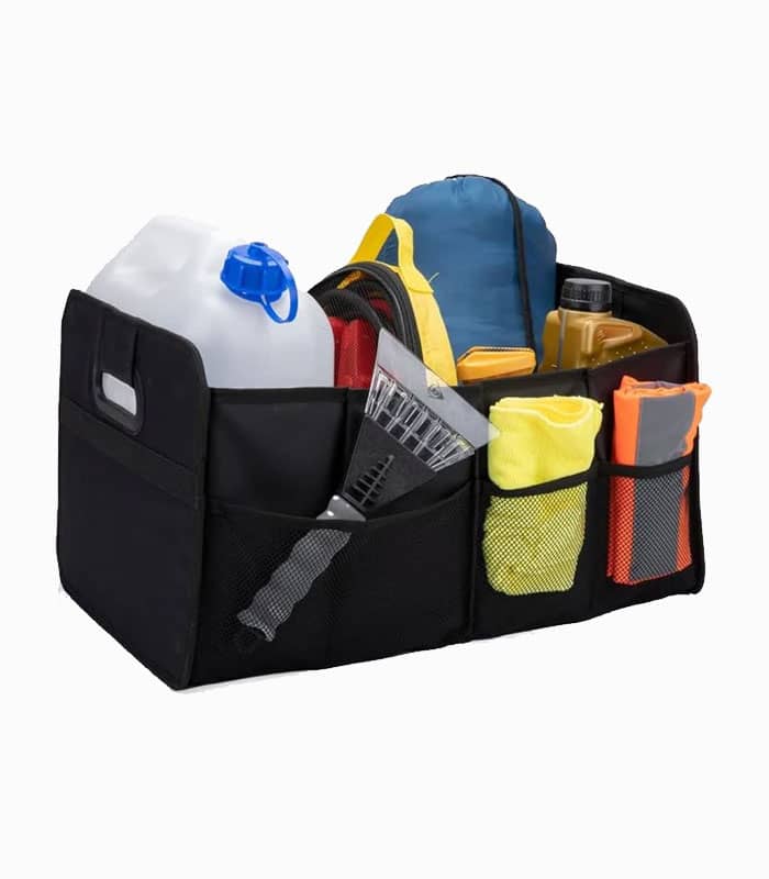 جعبه ذخیرهسازی تاشو و قابل حمل با دسته مقاوم، مناسب سفر، کمپینگ و نظمدهی داخل خودرو.