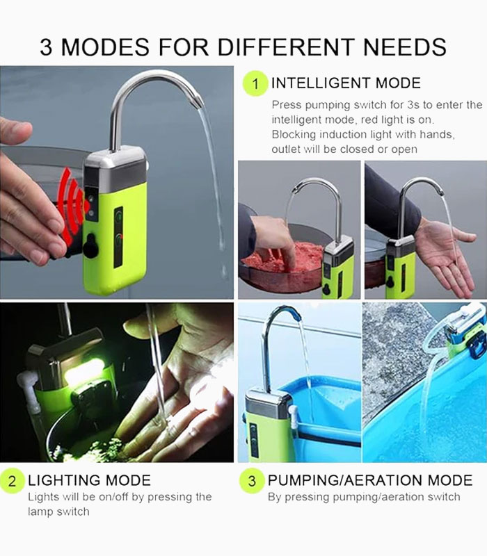 این پمپ هوا و اکسیژن شارژی وسیلهای کاربردی برای ماهیگیری، آکواریوم خانگی، باغبانی خانگی و هیدروپونیک است. طراحی کوچک و جمعوجور آن، حمل و استفاده در محیطهای داخلی و خارج از خانه را آسان میکند.