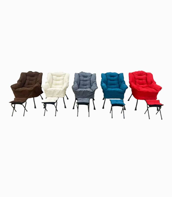 صندلی راحتی تاشو با دسته و پاف زیرپایی انتخابی مدرن و کاربردی برای خانه و فضای باز است. طراحی مینیمال با تکیهگاه خمیده و فوم نرم، راحتی فوقالعادهای را برای شما فراهم میکند.